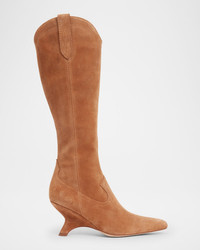 SIMKHAI "Shadow" suede western knee boots 3.00 in / 75 mm comma heel Pointed toe Zip closure for easy on/off Pull tabs at the collar Leather outsole Imported