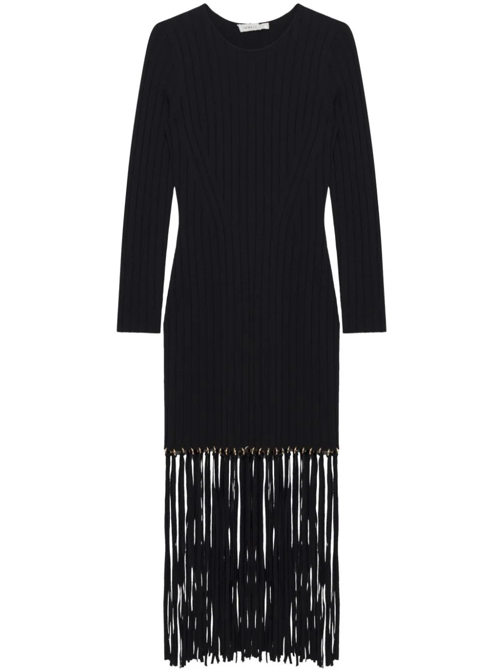 Sharron dress Highlights - Black - Ribbed knit - Crew neck - Long sleeves - Fringed edge Imported Composition Rayon 80%, Nylon 20% SIZE & FIT Measurement SLEEVE LENGTH 23.62 in(60 cm) HIPS 32.28 in(82 cm) LENGTH 52.36 in(133 cm) WAIST 25.19 in(64 cm) Washing instructions Read Manufacturer Guidelines