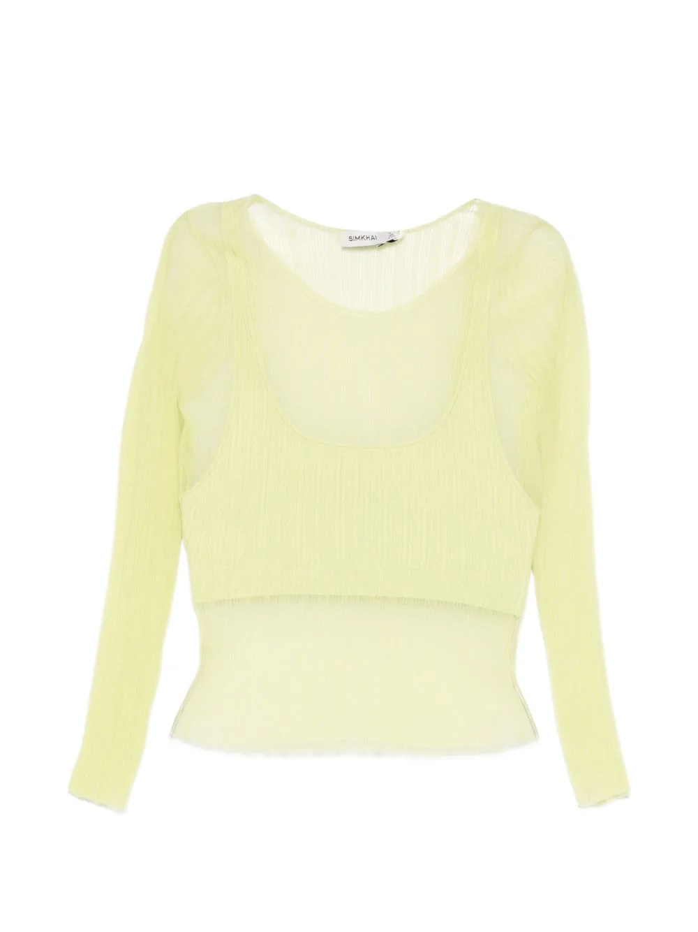 long-sleeve sheer top Highlights - Lime green - Sheer overlay - Long sleeves - Crew neck Imported Composition Outer: Polyester 100% Lining: Rayon 82%, Nylon 18%, Spandex/Elastane 2% Washing instructions Dry Clean Only