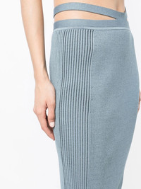 side ribbed-detail midi skirt slate blue stretch-design cut-out detailing ribbed detailing elasticated waistband mid-length Made in United States Composition Rayon 72%, Nylon 27%, Elastane 1% SIZE & FIT Model measurements Height 5 ft 10 in(1.78 m) Bust/Chest 33.07 in(84 cm) Hips 33.85 in(86 cm) Waist 25.19 in(64 cm) Measurement HIPS 26.77 in(68 cm) LENGTH 35.03 in(89 cm) WAIST 26.77 in(68 cm) FittingInformation This piece fits true to size. We recommend you get your regular size Designed to be fitted at the waist and through the thigh, loose from the knee Made with a mid-weight stretch fabric Washing instructions Dry Clean Only