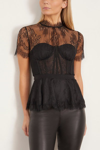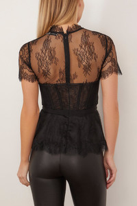 Kehlani Lace Short Sleeve Bustier Top in Black