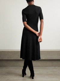 SIMKHAI understands that feeling good is a key part of looking good, so each of its designs is created with comfort and flow in mind. This 'Pati' dress is made from ribbed-knit with a slim-fitting bodice and A-line skirt. The half sleeves and wide collar make it both feminine and effortless. Size & Fit - Fits true to size, take your normal size - Designed for a slim fit - Fine knit - Model is 177cm/ 5'10" and is wearing a size Small Model measurements: - Bust: 81cm/ 32” - Waist: 67cm/ 26.5” - Hip: 91cm/ 36” Details & Care - Black ribbed-knit - Slips on - 66% rayon, 33% nylon, 1% spandex - Dry clean