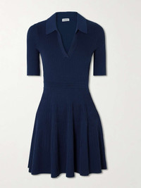 EDITORS'NOTES SIMKHAI's ‘Patricia’ mini dress will work for so many occasions. It’s knitted in a ribbed stitch and has a fitted bodice, fuller skirt and slim band around the waist to define your figure. Wear yours with strappy sandals or pumps. SIZE & FIT Model measurements: - Fits true to size, take your normal size - Designed to be slightly fitted at the bust and waist, loose at the hip - Mid-weight, slightly stretchy fabric - Model is 177cm/ 5'10" and is wearing a FR 36 - Bust: 81cm/ 32" - Waist: 69cm/ 27" - Hip: 95cm/ 37.5" DETAILS & CARE - Midnight-blue ribbed-knit - Slips on - 66% rayon, 33% nylon, 1% spandex - Dry clean