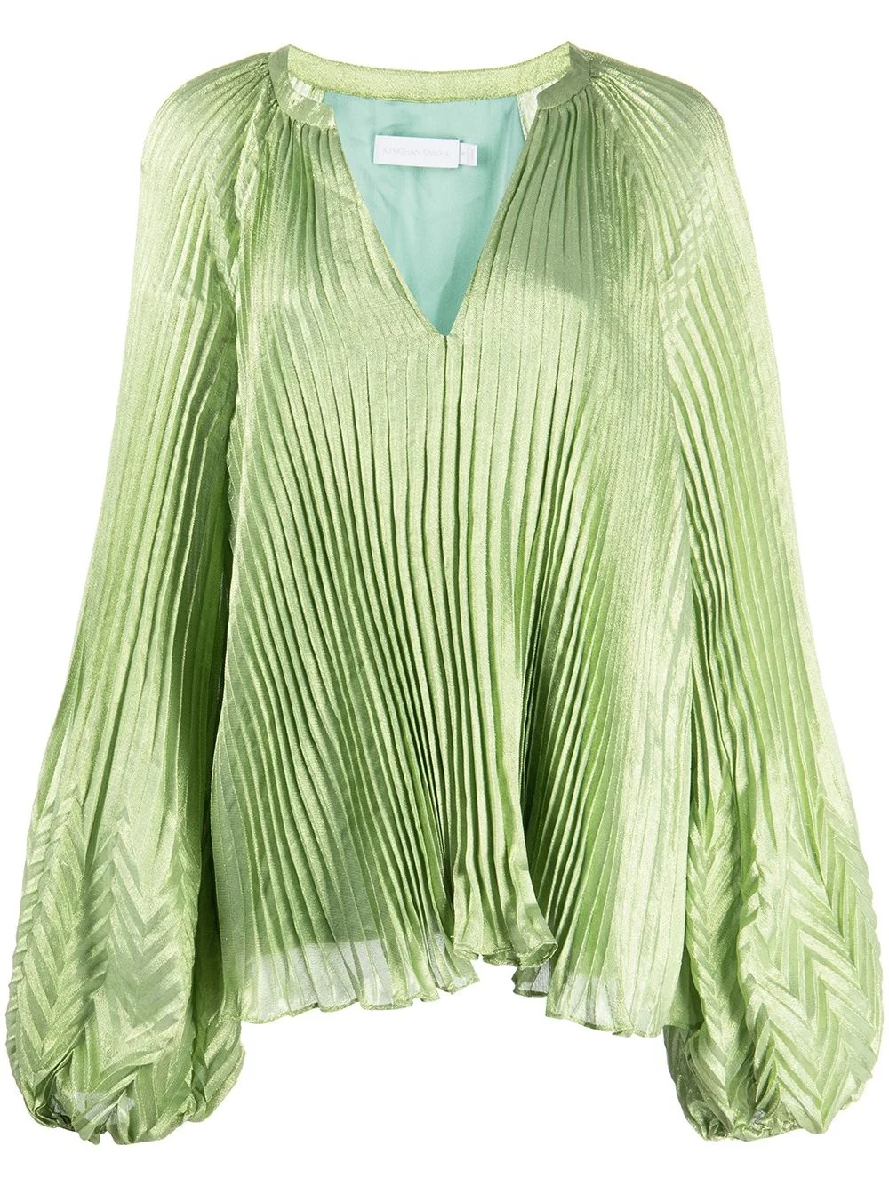 silk-blend V-neck pleated top mint green silk blend V-neck long sleeves Imported Composition Body: Silk 55%, Polyester 45% SIZE & FIT Model measurements Height 5 ft 10 in(1.77 m) Bust/Chest 29.92 in(76 cm) Hips 35.03 in(89 cm) Waist 24.01 in(61 cm) Measurement CHEST 34.64 in(88 cm) HIPS 37.79 in(96 cm) LENGTH 24.8 in(63 cm) FittingInformation This piece fits true to size. We recommend you get your regular size Cut for a loose fit Made with a lightweight fabric