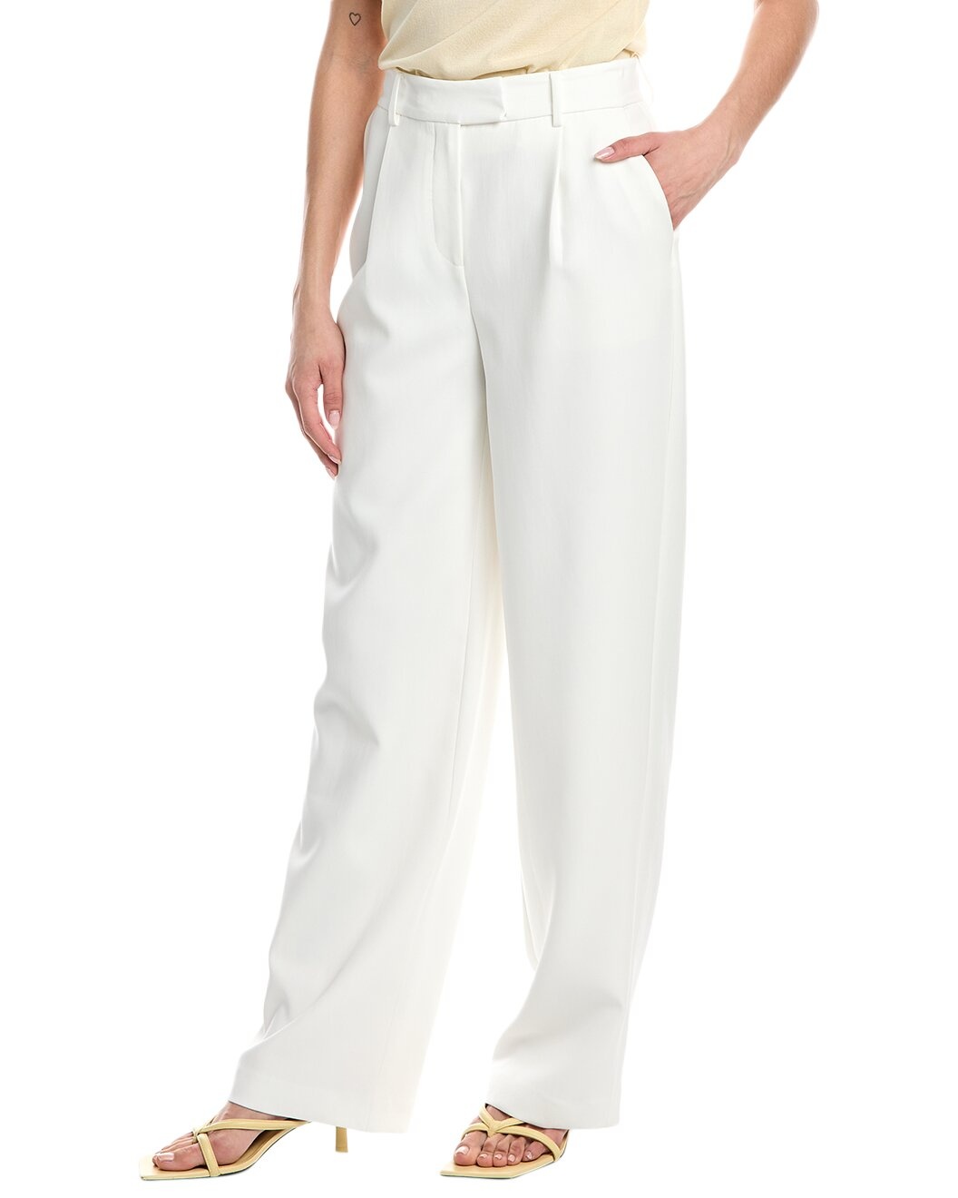- Color/pattern: ivory - Inseam approximately 33in; 12.5in rise - Model is 5'10 and is wearing a size 4. Measurements may vary slightly by size. - Design details: belt loops, pleated front and four-pocket styling - Zip fly with button and slide tab closures - 71% acetate, 29% polyester - Lining: 100% polyester - Dry clean only - Imported