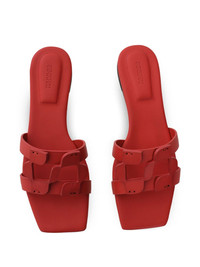 leather slides Highlights - Ruby red - Slip-on style - Flat rubber sole - Branded footbed - Square open toe Imported Composition Lining: Sheepskin 100% Outer: Calf Leather 100% Sole: Rubber 100%