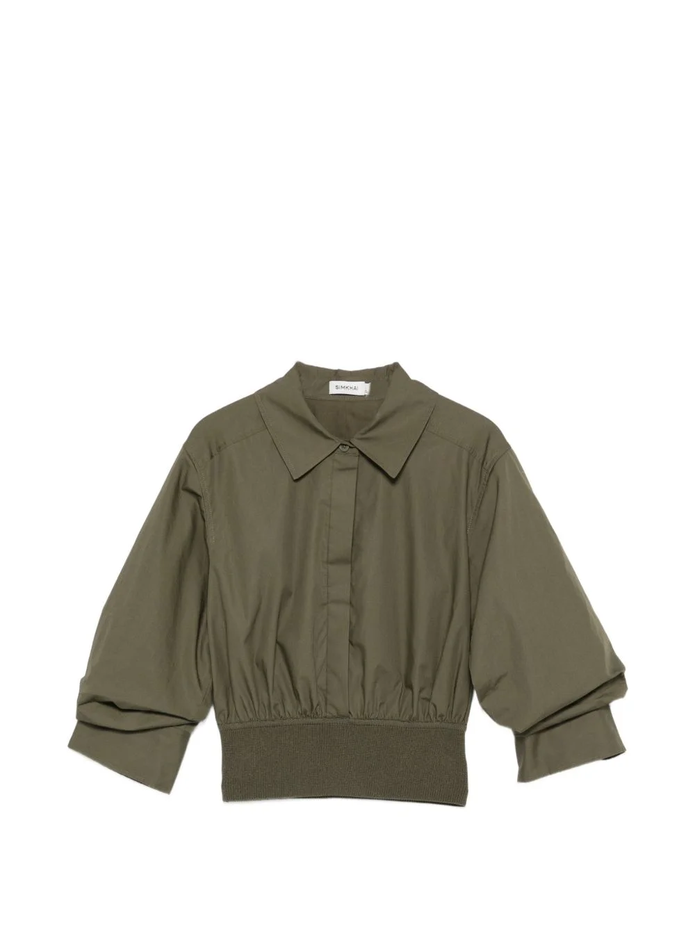 gathered-sleeve cropped shirt Highlights - Olive green - Gathered sleeves - Ribbed hem - Point collar - Front button fastening Imported Composition Outer: Cotton 100%, Recycled Viscose 83%, Polyester 17% Lining: Cotton 100% Washing instructions Machine Wash