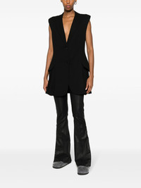 single-breasted pleated vest Highlights - Black - Pleat detailing - Notched lapels - Front button fastening - Sleeveless - Shoulder pads - Two side flap pockets - Thigh-length - Straight hem Imported Composition Lining: Polyester 96%, Spandex/Elastane 4% Outer: Acetate 71%, Polyester 29% SIZE & FIT Model measurements Height 5 ft 11 in(1.8 m) Bust/Chest 31.88 in(81 cm) Hips 35.03 in(89 cm) Waist 24.01 in(61 cm) FittingInformation Designed for a slim fit that sits just away from the body offering a close yet comfortable fit The internal shoulder pads offer a structured shape Made from a midweight fabric This piece fits true to size – take your usual size Washing instructions Dry Clean Only