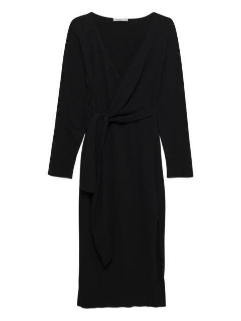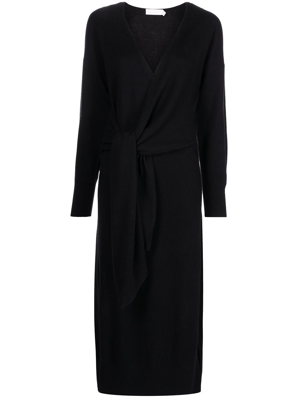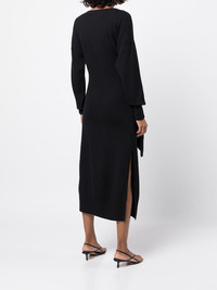 Skyla dress Black Skyla dress from JONATHAN SIMKHAI featuring side slit, side tie fastening, V-neck, long sleeves and mid-length. Imported Composition Body: Rayon 62%, Acetate 35% SIZE & FIT Model measurements Height 5 ft 10 in(1.77 m) Bust/Chest 31.9 in(81 cm) Hips 34.6 in(88 cm) Waist 24 in(61 cm) FittingInformation This piece fits true to size. We recommend you get your regular size Designed for a close fit at the bust, waist and hips Made with a mid-weight fabric