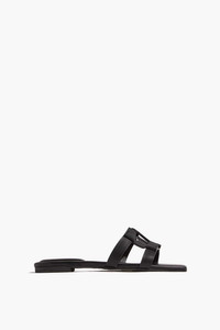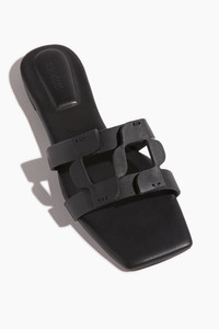 The Simkhai Monogram Flat Slide is the perfect addition to your summer wardrobe. These slide sandals features a sleek design in leather. FIT DETAILS - Slides - Leather - Flat heel