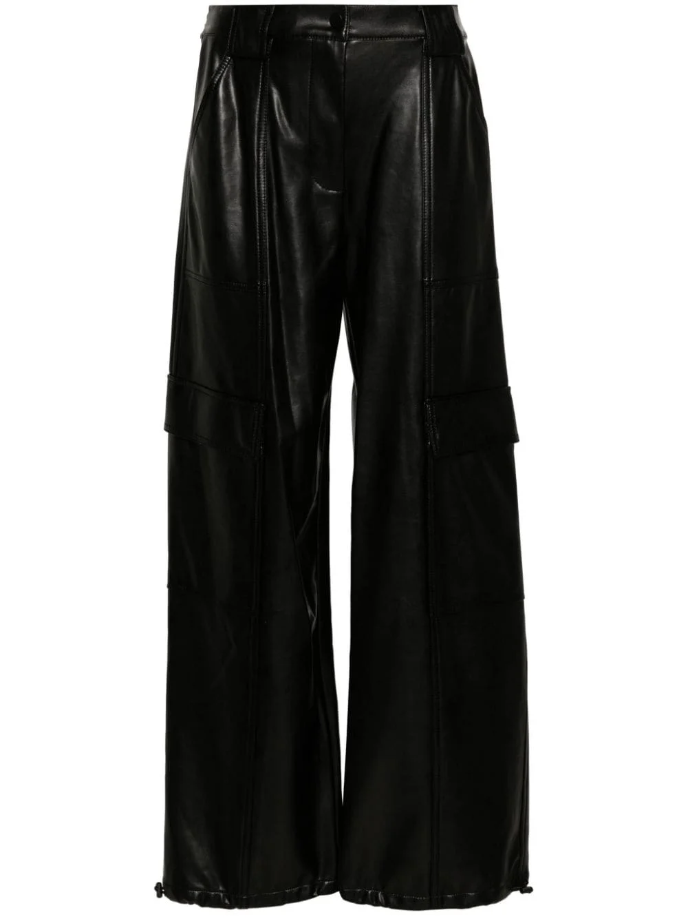 Sofia faux-leather cargo trousers Highlights - Black - Faux leather - High waist - Front press-stud and zip fastening - Rear elasticated waistband - Two diagonal pockets to the sides - Belt loops - Two side cargo pockets - Two side cargo pockets - Two rear flap pockets - Wide leg - Drawstring ankles Imported Composition Outer: Polyester 100% Lining: Viscose 100% Washing instructions Dry Clean Only