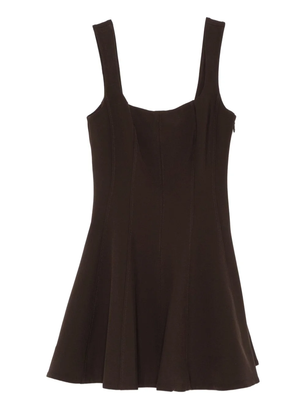 square-neck mini dress Highlights - Brown - Square neck - Pleated skirt Imported Composition Outer: Polyester 64%, Viscose 27%, Cotton 6%, Elastane 3% Lining: Polyester 100% SIZE & FIT Model measurements Height 5 ft 8 in(1.73 m) Bust/Chest 29.92 in(76 cm) Hips 33.07 in(84 cm) Waist 23.22 in(59 cm) Washing instructions Read Manufacturer Guidelines