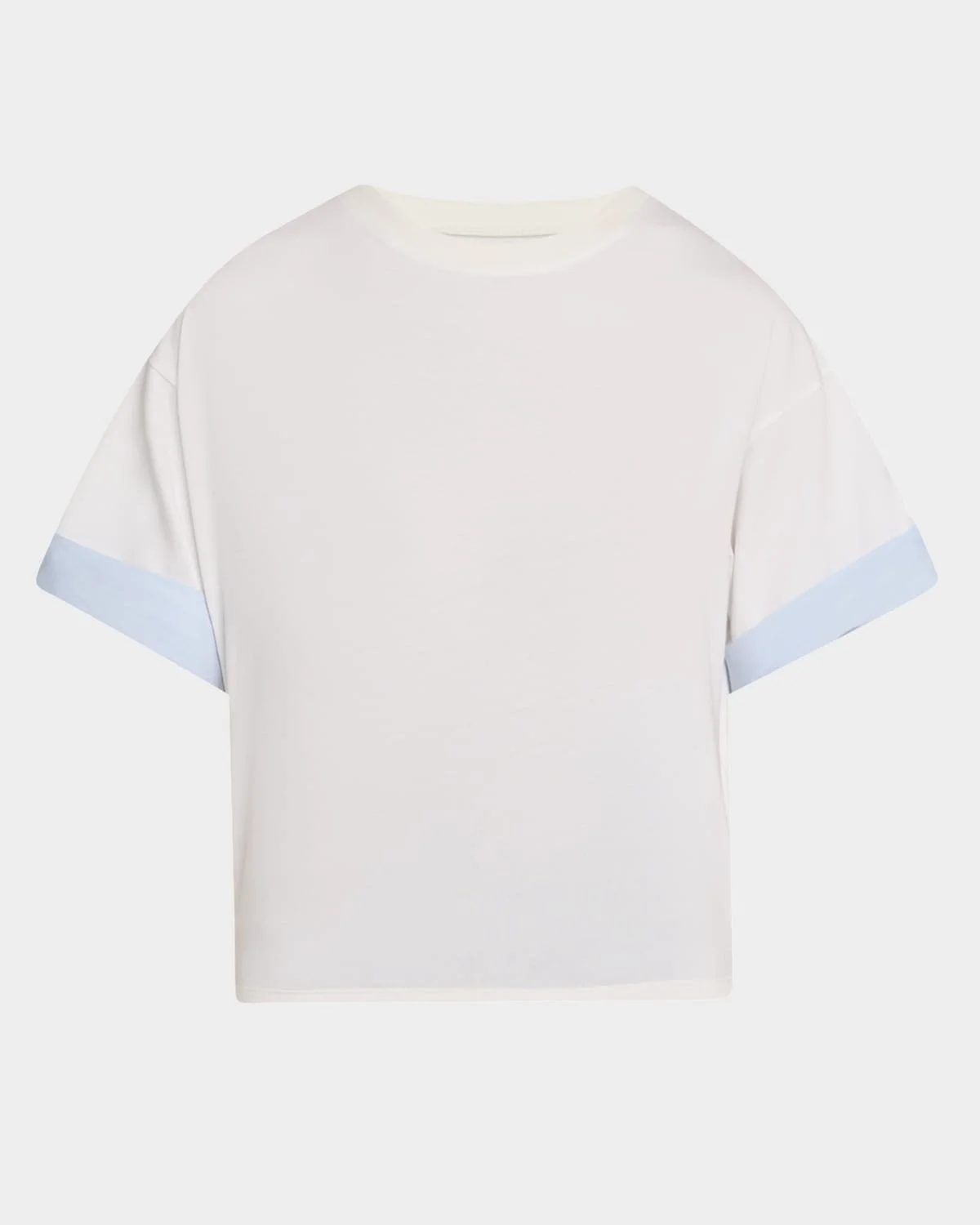 SIMKHAI "Sutton" combo top finished with contrast cuffs Crew neckline Dropped shoulders Short sleeves Relaxed fit Hem sits at the hip Pullover style Cotton/elastane Dry clean Imported