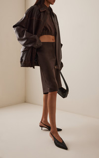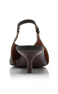PRODUCT DETAILS - Slingback pumps silhouette, leather body, pointed toe, lined - Buckle fastening - Composition: upper: 100% calf leather; lining: 100% sheepskin; outsole: 100% leather - Made in Brazil