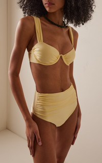 Teya Ruched High-Rise Bikini Bottoms yellow