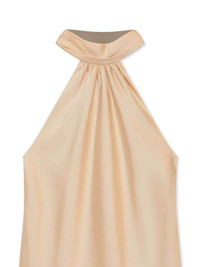 Thea halterneck top Highlights - Blush beige - Satin finish - Ruched detailing - Halterneck - Mock neck - Rear button fastening - Sleeveless - Straight hem Imported Composition Acetate 89%, Polyester 11%