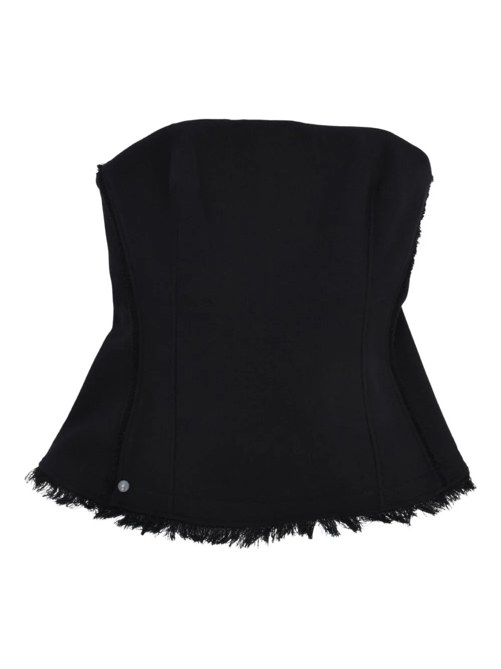 Theodora fringed top Highlights - Black - Fringed hem - Strapless - Rear zip fastening Imported Composition Polyester 62%, Rayon 33%, Spandex/Elastane 5% Washing instructions Read Manufacturer Guidelines