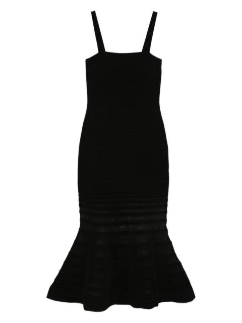 Vallarie ribbed midi dress Highlights Imported Composition Rayon 81%, Polyester 15%, Nylon 3%, Elastane 1% SIZE & FIT Model measurements Height 5 ft 10 in(1.78 m) Bust/Chest 33.46 in(85 cm) Hips 36.22 in(92 cm) Waist 23.22 in(59 cm)