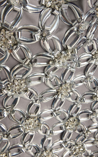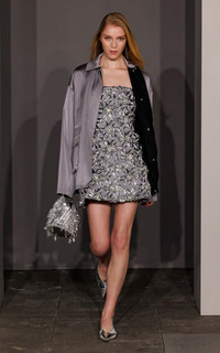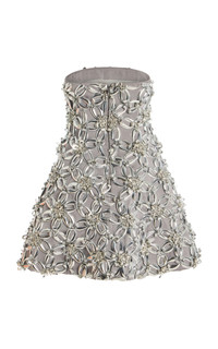 PRODUCT DETAILS - Slim fit, square neckline with petite straps, embroidered detailing throughout, column silhouette mini - Zip Closure Through Back - Lined - Composition: 100% Acetate - Color: silver - Dry Clean Only - Fall-Winter '25