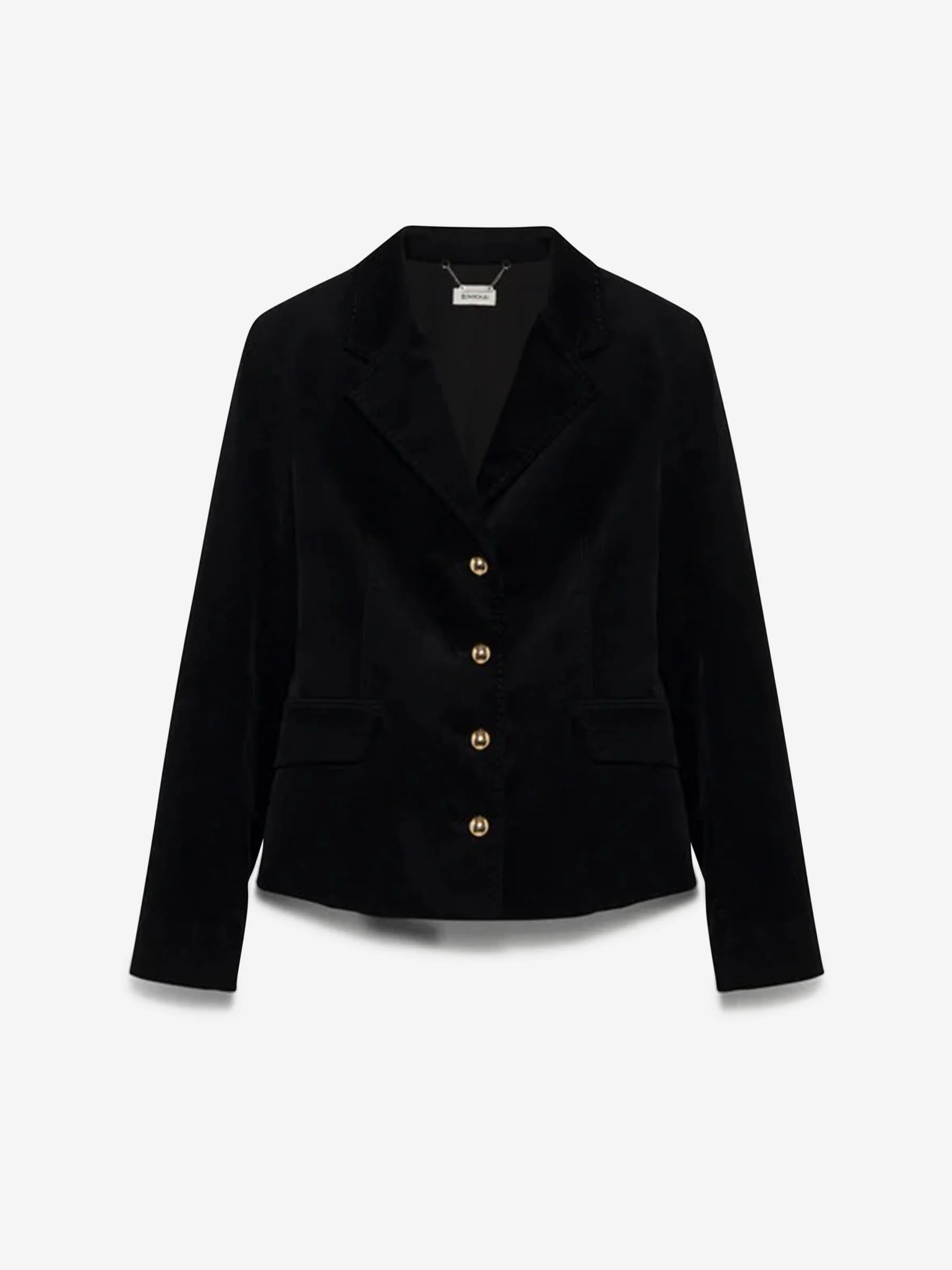 SKU: 741-002303 01 BRAND ID: 625-6082-VH Blazer By Simkhai • Collar with lapel • Regular fit • Fully lined for added comfort and a polished finish • Side pockets with flap • Cuffs with button • Made of velvet • Front closure with buttons • Composition: 100% cotton • Made in: Italy