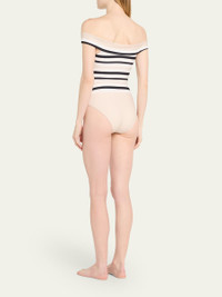 SIMKHAI "Walker" multi-striped one-piece swimsuit Off-the-shoulder neckline Moderate seat coverage Nylon/polyamide/spandex Imported Online Inquiries: BGS21_T6RV2| Store Inquiries: #5027528