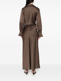 wrap-front maxi dress Highlights - Brown - Wrap-front - Long sleeves - Collared neck Imported Composition Acetate 84%, Polyester 16% SIZE & FIT Model measurements Height 5 ft 10 in(1.78 m) Bust/Chest 33.46 in(85 cm) Hips 36.22 in(92 cm) Waist 23.22 in(59 cm) Washing instructions Dry Clean Only