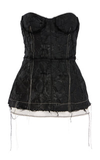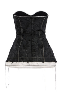PRODUCT DETAILS - Slim fit, sweetheart neckline and strapless, stitch piping detail throughout, with an attached belt for a cinched waist, peplum silhouette - Zip Closure Through Back - Lined - Composition: Shell: 57% Polyester 27% Cotton 9% Acrylic 4% Polyamide 2% Other 1% Elastane - Color: black - Dry Clean Only - Fall-Winter '25