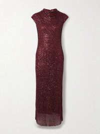 Simkhai’s ‘Zaria’ dress is elegant and captivating, making it the perfect choice for your next big event. Made from mesh, it's saturated with shimmering beads and sequins and has a draped cowl neckline and cap sleeves. Size & Fit - Fits true to size, take your normal size - Intended for a slim fit - Mid-weight, heavily embellished, stretchy fabric - Model is 175cm/ 5'9" and is wearing a US 4 Details & Care - Burgundy mesh - Concealed hook and zip fastening at back - 85% nylon, 15% elastane; lining: 96% polyester, 4% spandex - Fully lined - Dry clean - Designer color: Cranberry