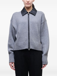 zip-up leather-collar cardigan Highlights - Heather grey - Leather collar - Zip front fastening - Ribbed hem - Long sleeves Imported Composition Leather 100%, Wool 100% Washing instructions Read Manufacturer Guidelines
