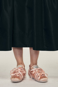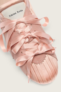 Introducing the Ballerina Grip Trainer, a new take on a ballerina pump with sporty references. It features multiple satin ribbon laces and a branded tongue. Product Details Low-top satin and leather sneakers - Satin bow ribbon lacing - Branded tongue detail - Rubber trek sole Composition: Upper: 50% Polyester 50% Leather Lining: 100% Leather Sole: 100% EVA SKU: BPT4 0816 SOFT PINK