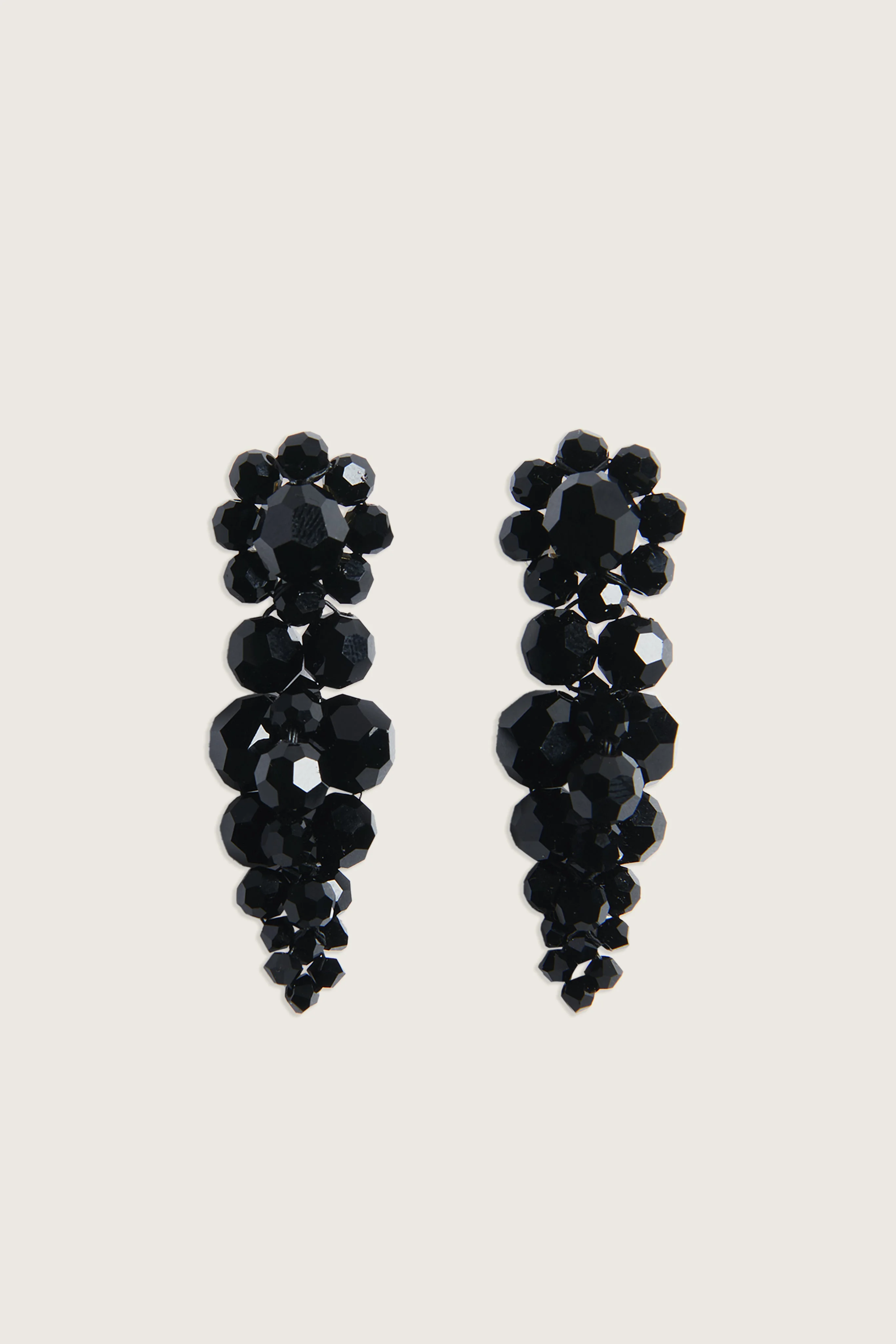 A drop earring made up of clustered glass crystals. Product Details Crystal drop earrings - Crystal detail - Post stud fastening Composition: 85% CRYSTAL (GLASS), 15% BRASS SKU: ERG350 0903 JET