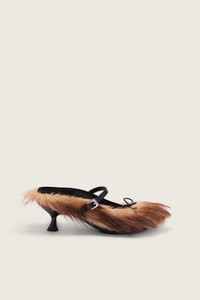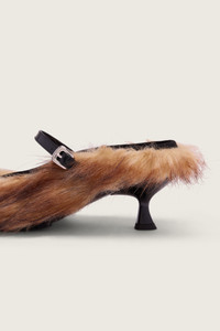 The Faux Fur Grip Mule Heel features an unorthodox faux fur upper, it features a grip sole for a sensible touch. Due to the nature of the material, no piece is exactly alike. Product Details Faux fur mule - Faux fur upper - Round toe - Grip sole - Heel height 6cm Composition: Upper: 48% Modacrylic 39% Polycarbonate 13% Polyester Lining: 100% Leather Sole: 100% EVA SKU: HBG1 1255 NATURAL