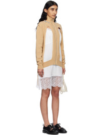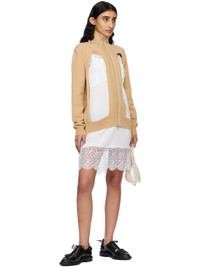 Beige Embellished Window Zip-Up Cardigan