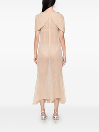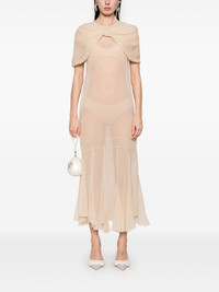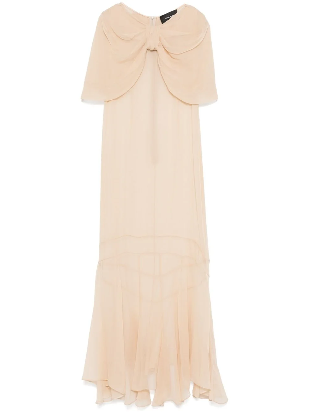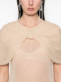 sheer bow-detailed midi dress Highlights - Beige - Concealed rear zip fastening - Crew neck - Short sleeves Imported Composition Silk 100% SIZE & FIT Model measurements Height 5 ft 10 in(1.78 m) Bust/Chest 33.46 in(85 cm) Hips 36.22 in(92 cm) Waist 23.22 in(59 cm) FittingInformation Designed for a slim fit that sits just away from the body offering a close yet comfortable fit The dart stitching adds structure and a closer fit in the torso of this piece Made from a lightweight non-stretch fabric Measurement HIPS 38.58 in(98 cm) LENGTH 53.54 in(136 cm) WAIST 33.85 in(86 cm) Washing instructions Dry Clean Only