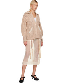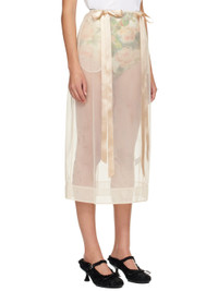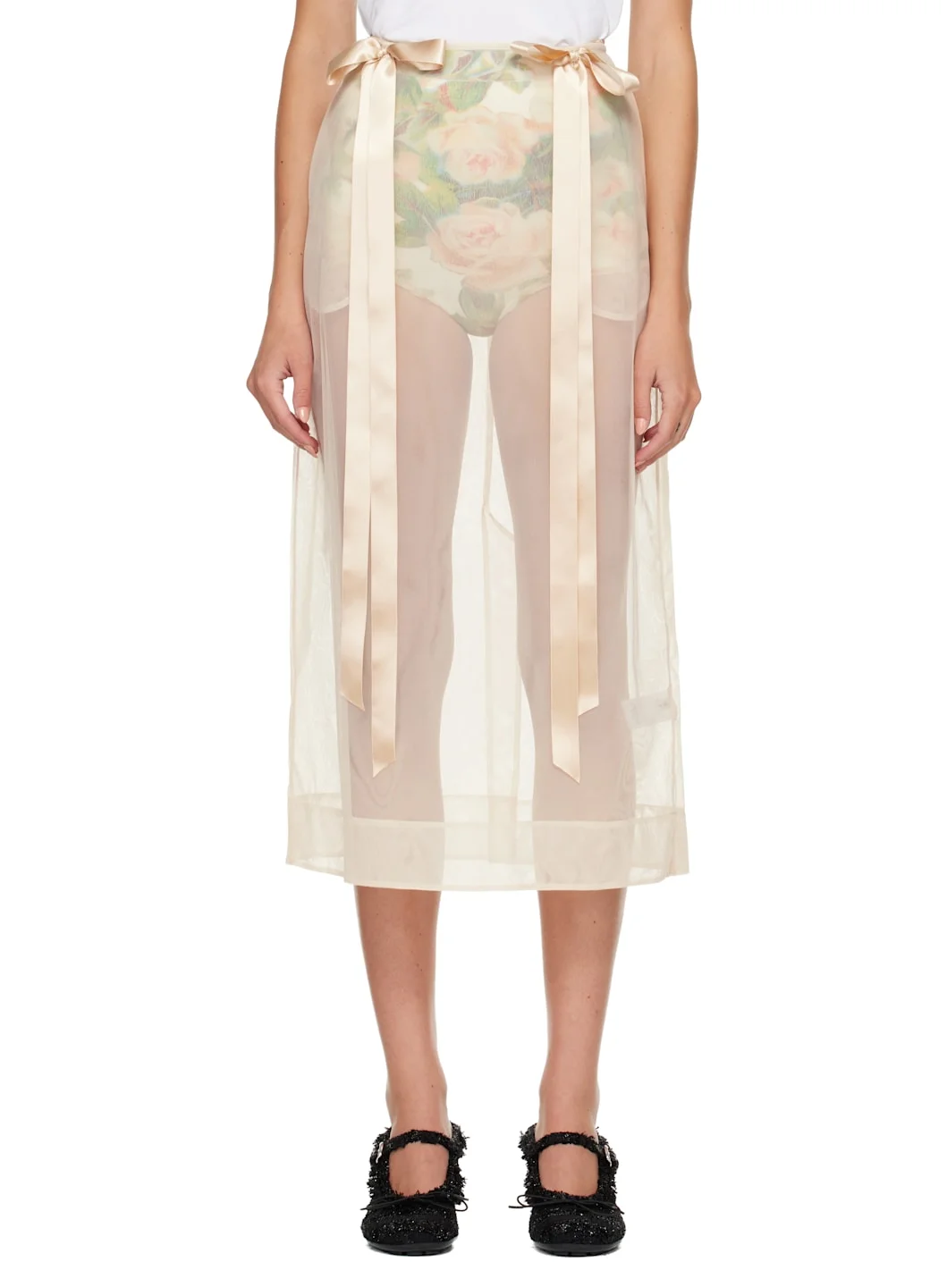 Beige Sheer Bow Ribbon Pencil Midi Skirt