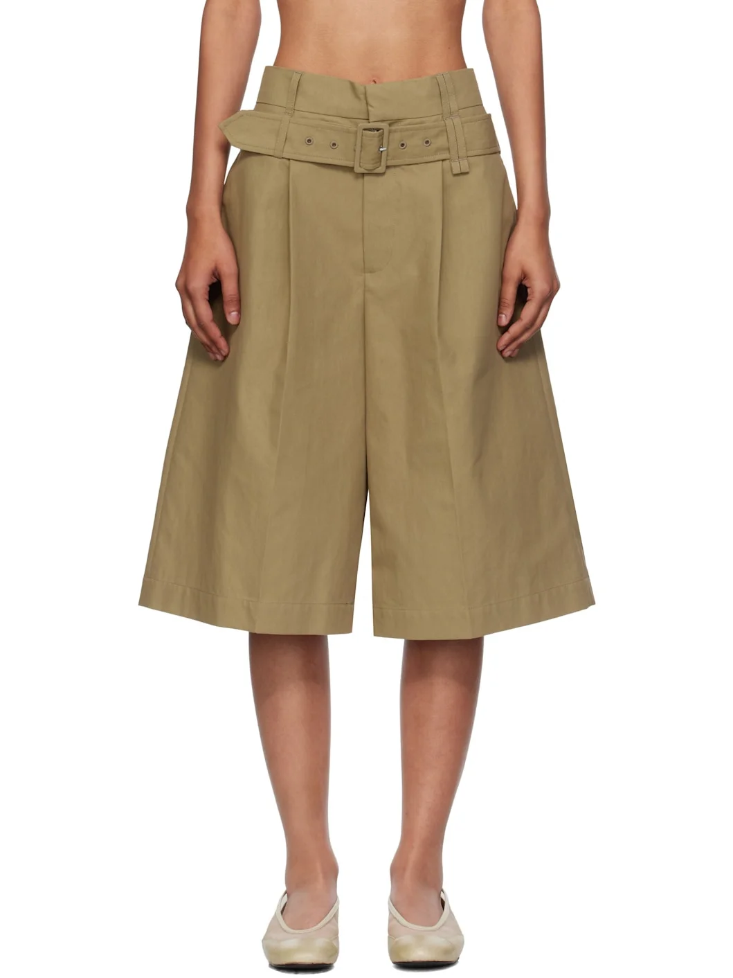 Cotton- and nylon-blend canvas shorts. · Wide-leg · High-rise · Detachable cinch belt at dual belt loops · Four-pocket styling · Zip fly · Pleats at front · Creased legs Supplier color: Stone Body: 70% cotton, 30% polyamide. Lining: 100% cotton. Made in Portugal 252405F088001