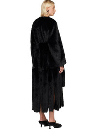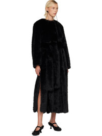 Black Belted Faux Fur Long Multi Slit Coat