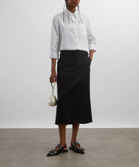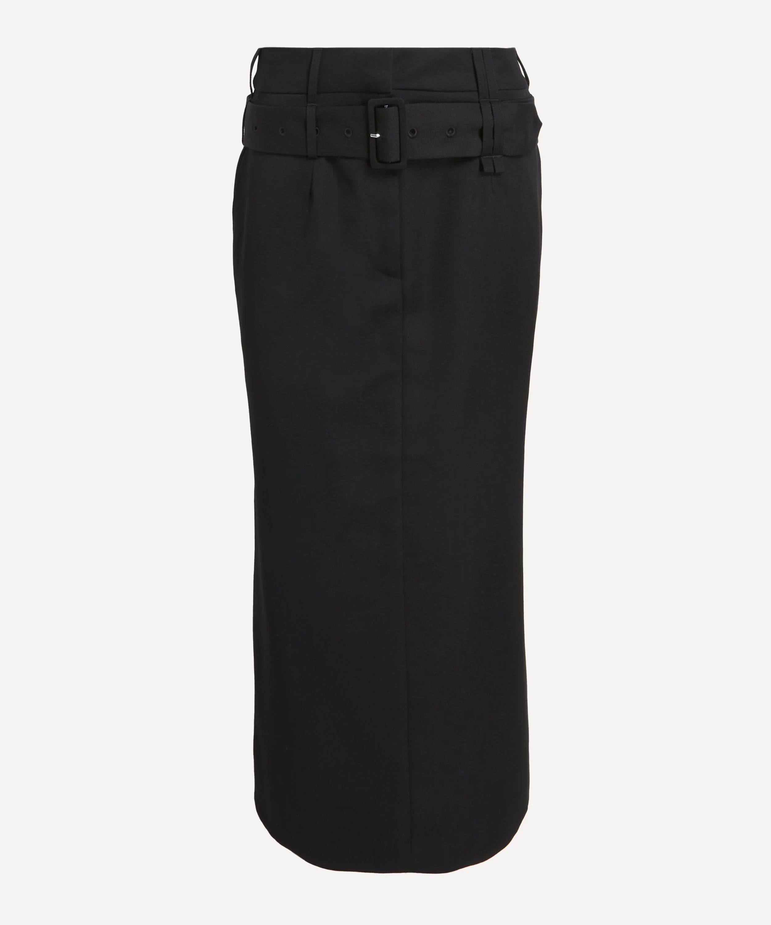 DETAILS Venetian wool-blend skirt Mid-waist fit Midi length Double belt loop detail Self-fabric belt Kick pleats at back Zip closure Lined SIZE & FIT Model is 175cm/5'9"; Chest: 77cm; Waist: 57cm; Hip: 87cm and wears a size 8 COMPOSITION & CARE 55% Polyester; 45% Virgin wool Lining: 60% Acetate; 40% Cupro Dry clean