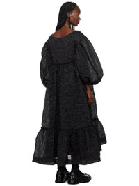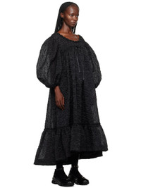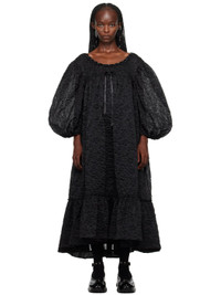 Polyester- and nylon-blend cloqué dress. Ruffled trim throughout. · Beaded accents at round neck · Bow accent at chest · Seam pockets · Puff sleeves · Button closure at back · Partial satin lining Supplier color: Black/Black/Jet