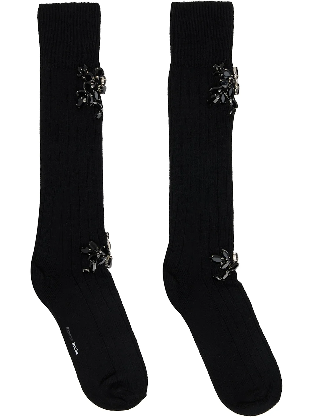 Pair of knee-high rib-knit stretch wool-blend socks. · Crystal-cut accents at cuff and ankle · Logo printed at sole Supplier color: Black/Jet 80% wool, 18% polyamide, 2% elastane. Made in Portugal 252405F076005