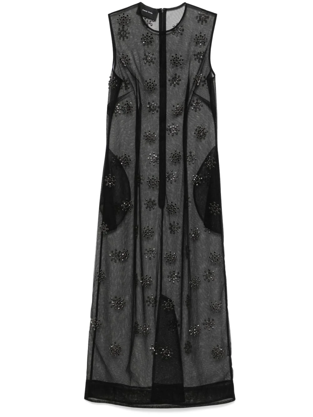 crystal embellishment midi dress Highlights - Black - Rear zip fastening - Two side slit pockets - Sleeveless - Round neck Imported Composition Outer: Polyester 100%, Crystal 100%, glass 100%, Metal 100% Lining: Polyamide 100% SIZE & FIT FittingInformation Designed for a slim fit that sits just away from the body offering a close yet comfortable fit The vented hem offers movement at the rear Made from a lightweight non-stretch fabric