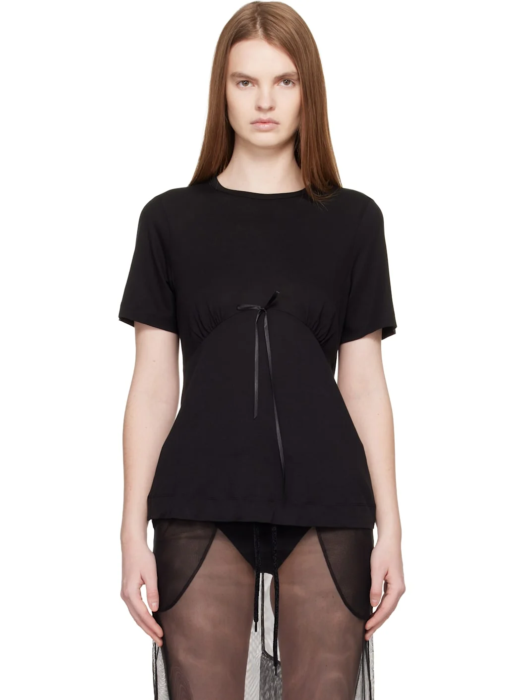 Semi-sheer lyocell jersey T-shirt. · Crewneck · Satin bow applique and gathering at chest Supplier color: Black/Black Body: 100% lyocell. Trim: 100% polyester. Made in Portugal 261405F110006