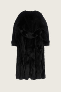 A full length coat made from a plush faux fur, it features a self belt at the waist for a more sculptural silhouette - the seasonal slit detail is featured at the hem. Product Details Faux fur coat - From Look 54 on the runway - Faux fur composition throughout - Hook-eye closure - Fully lined - Self belt Composition: 48% Modacrylic 39% Polycarbonate 13% Polyester Lining: 100% Viscose SKU: 2074 1090 BLACK