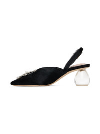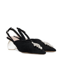 Calf-hair heels in black. · Pointed toe · Faux-pearl and crystal-cut accents at vamp · Pin-buckle slingback strap · Logo embossed at padded footbed · Grained calfskin lining · Perspex® sculptural heel with rubber injection · Nubuck sole · Heel: H2.5" Supplier color: Black/Pearl/Clear Upper: calfskin. Sole: leather, rubber. Made in Portugal 242405F122004