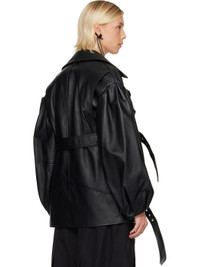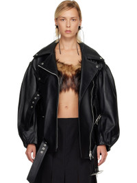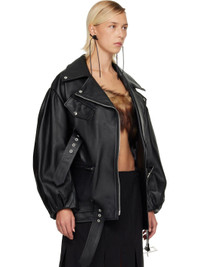 Black Puff Sleeve Multi Belt Leather Biker Jacket