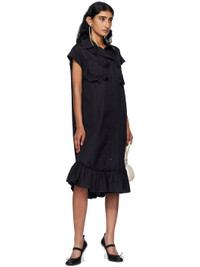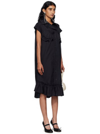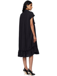 Cotton poplin midi dress. · Spread collar · Button closure with extended placket · Ruffled trim at chest and hem · Shirttail hem · Box pleat at back yoke Supplier color: Black 100% cotton. Made in Portugal 252405F054009
