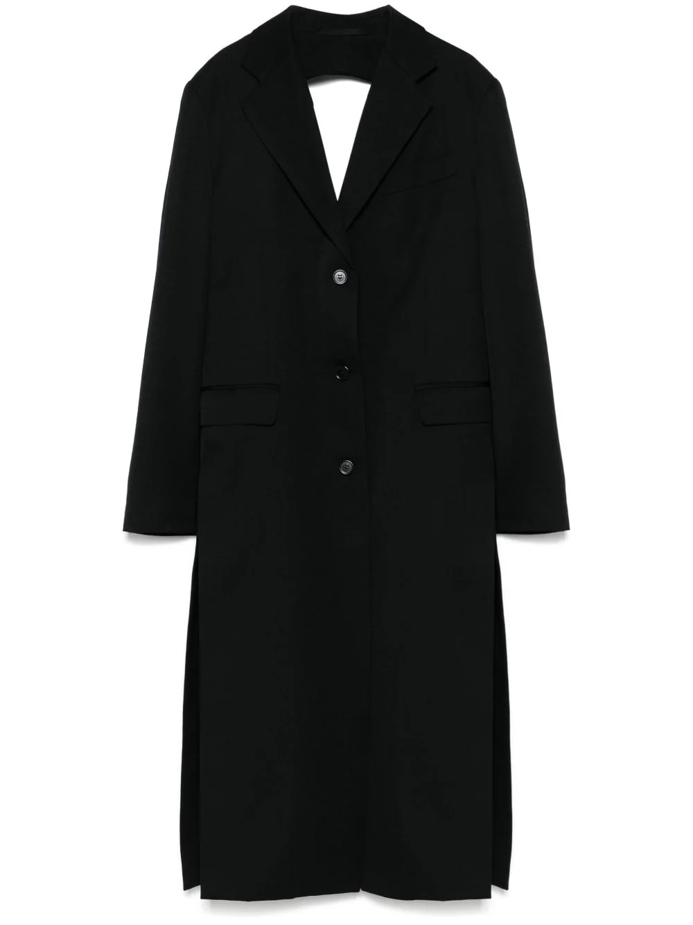 bow-detail cut-out coat Highlights - Black - Front button fastening - Jetted chest pocket - Two front flap pockets - Side slits Imported Composition Outer: Polyester 55%, Virgin Wool 45% Lining: Viscose 100% SIZE & FIT Model measurements Height 5 ft 11 in(1.8 m) Bust/Chest 31.49 in(80 cm) Hips 36.61 in(93 cm) Waist 24.4 in(62 cm) FittingInformation Designed to be unstructured, offering a loose fit throughout The tie fastening gives an adaptable and personalised fit Made from a midweight non-stretch fabric