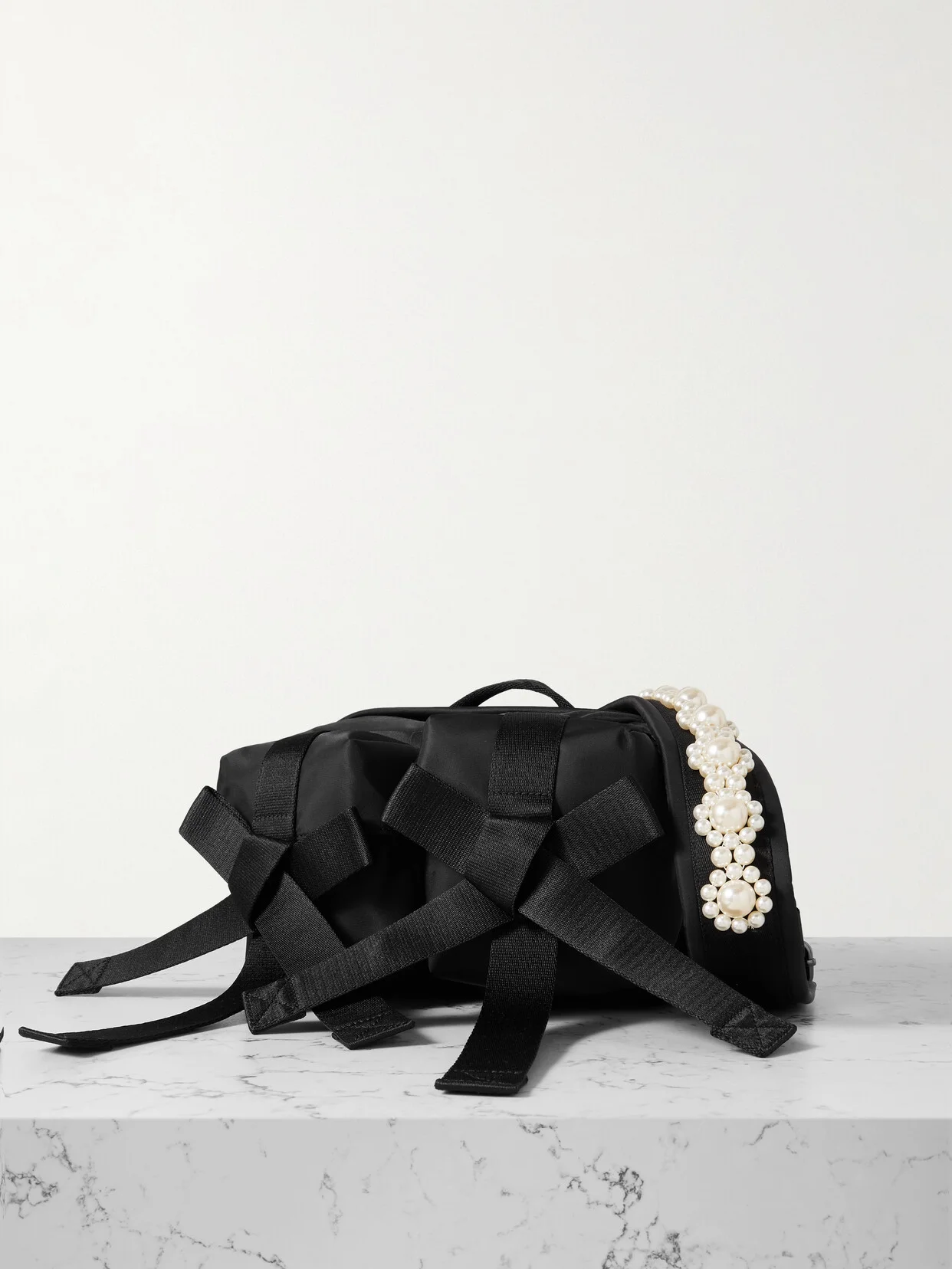Leave it to Simone Rocha to make a sporty bag feel feminine and romantic. Made from shell, it's fitted with various pockets to keep things organized and has bow embellishments on the front two cargo-style ones, as well as the label's signature faux pearls tracing the adjustable strap. Carry it around your waist, crossbody, or simply strung over your shoulder.
