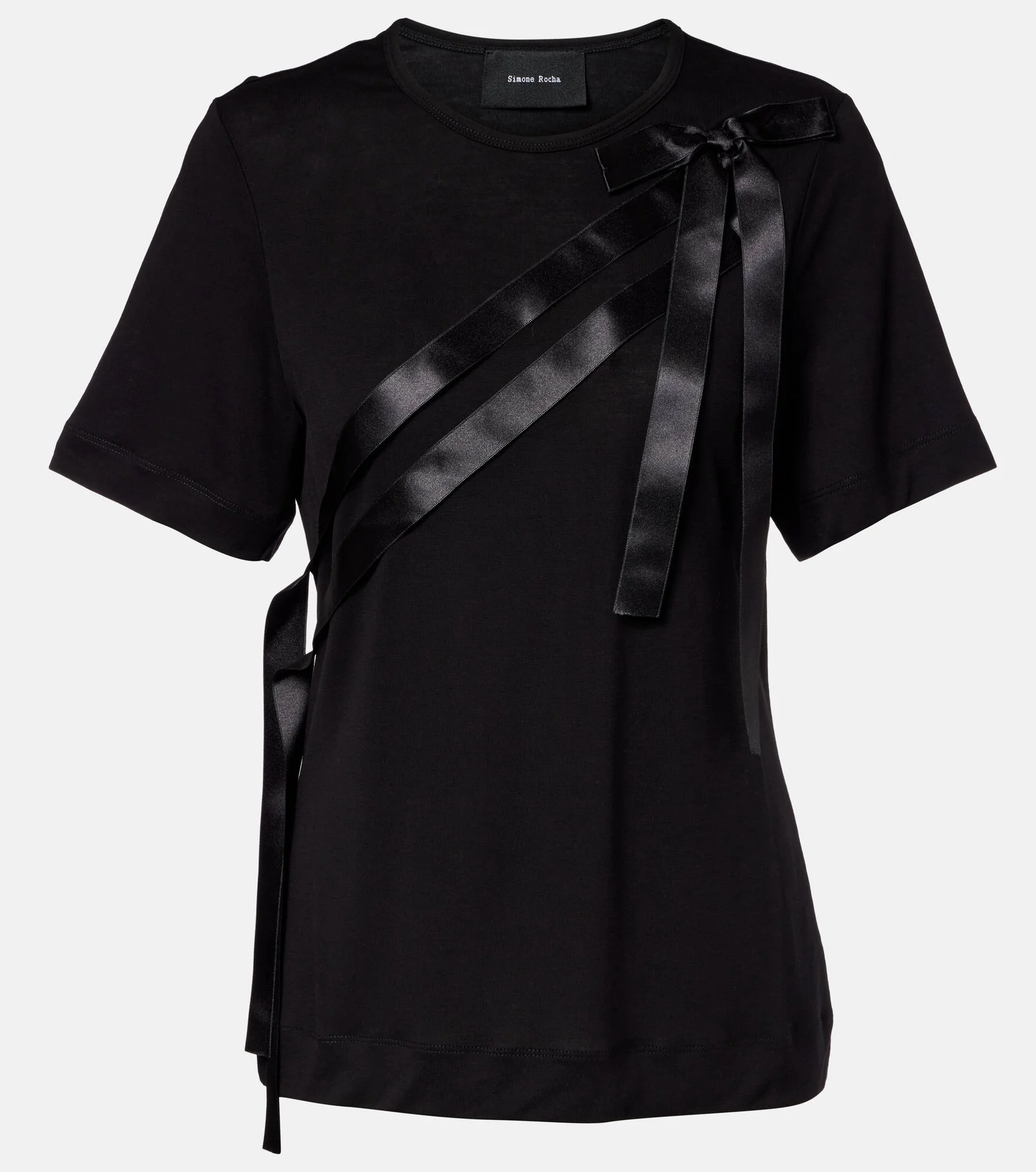A mainstay at London Fashion Week, Simone Rocha's artful aesthetic is a subversive take on romance. Made from soft jersey, this classic T-shirt is finished with a satin bow stitched to the front. Product Details - Material: 100% lyocell - Care instructions: machine wash at 30 degrees - Made in Portugal - Color: black - Designer color name: Black - Trim: 100% polyester - Item number: P01146241 Size & Fit - True to size - Cinched waist - Stretchy fabric - Falls to the hip - The model seen in the picture is 178cm-5'10" and wearing a size XS