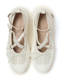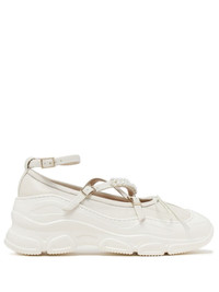 bow-detail leather ballerina shoes In keeping with the labelâs off-kilter aesthetic, Simone Rochaâs spectrum of inspiration is broad - think traditional ballet pumps and outdoor trekking shoes. Boasting multiple buckled straps, this pair of ballerina shoes sits atop a chunky rubber sole. Highlights - Ivory white - Lambskin - Bow detailing - Faux-pearl detailing - Round toe - Crossover strap at the toe - Buckle-fastening ankle strap - Branded insole - Chunky rubber sole Imported Composition Outer: Lambskin 100% Lining: Leather 100% Sole: Rubber 100%